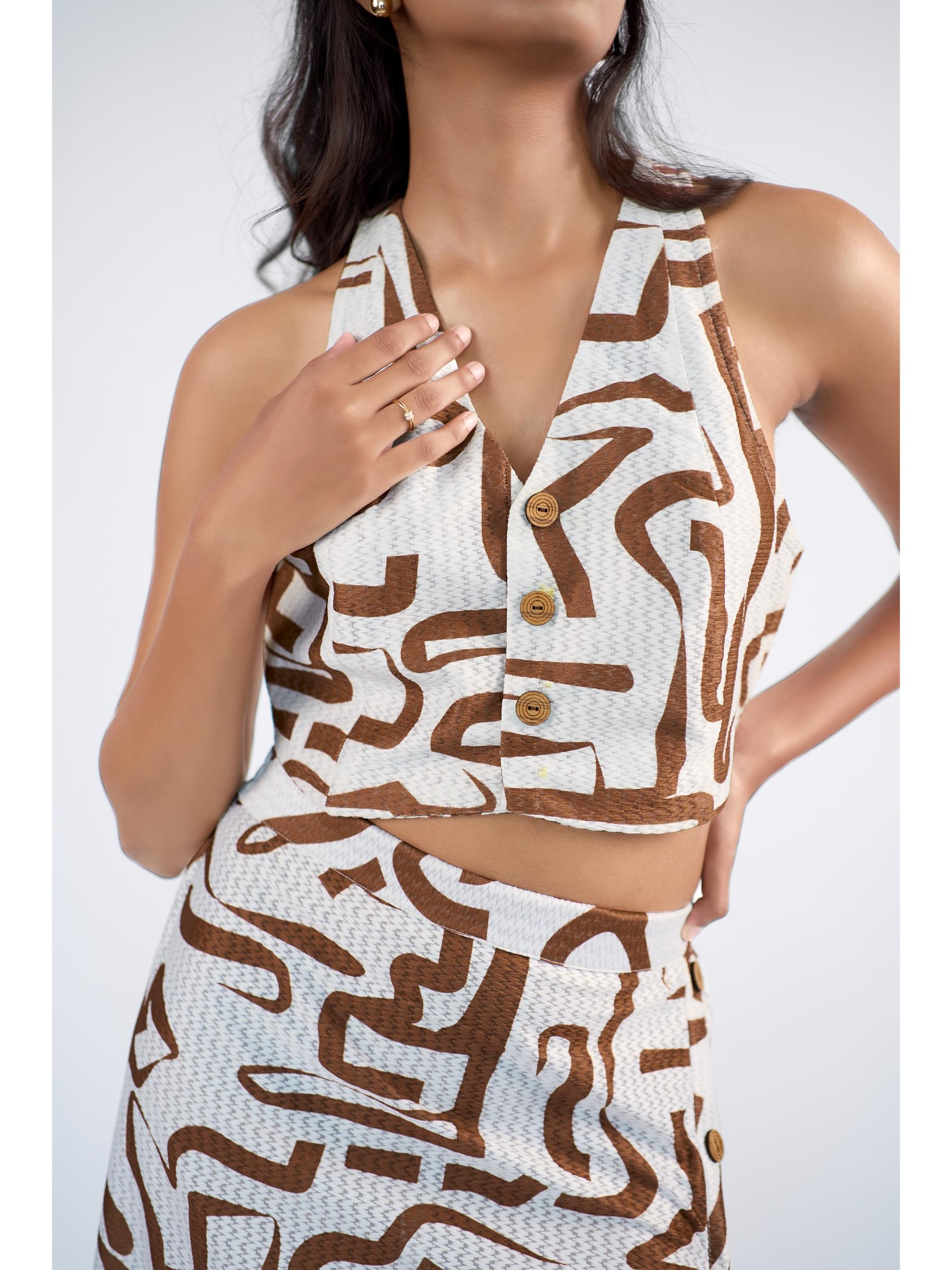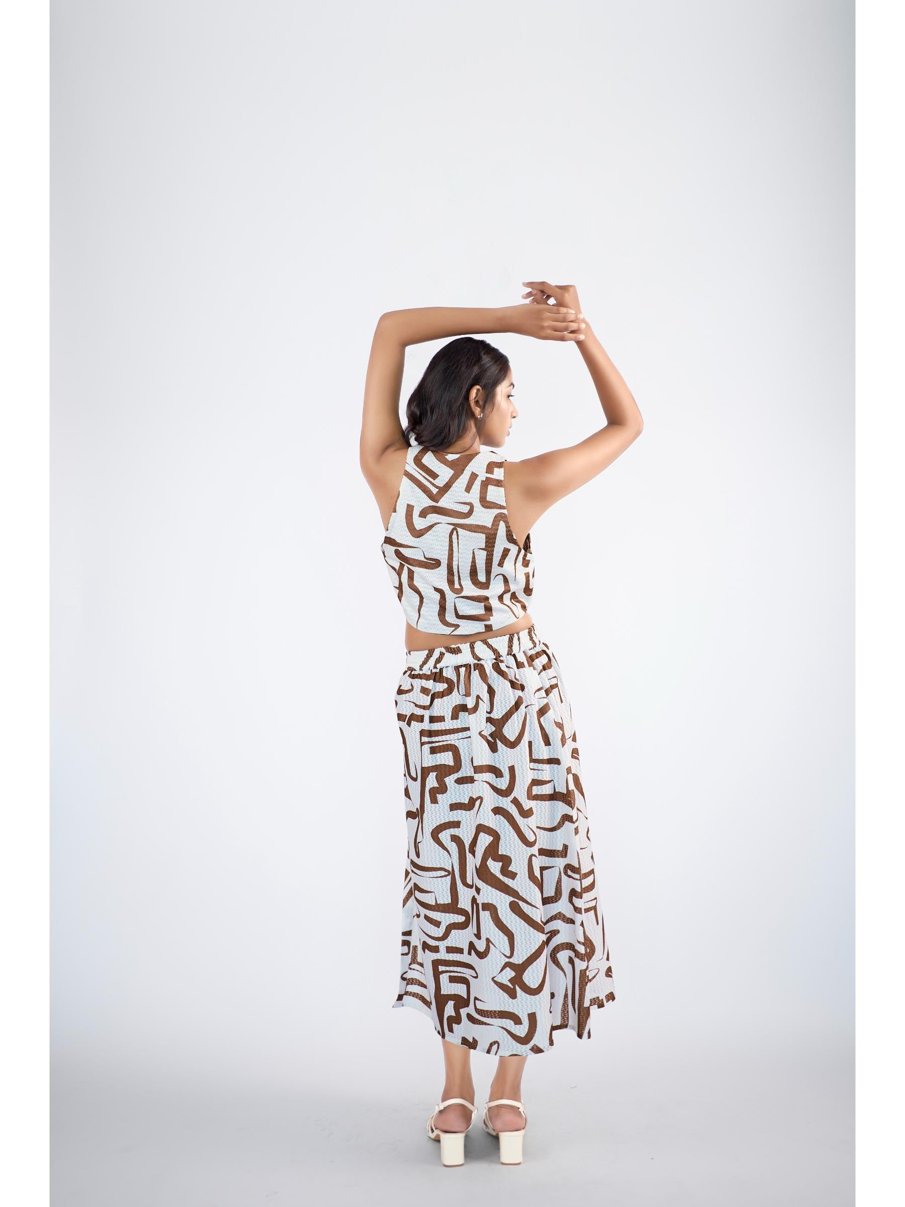 Bottom: A chic, elasticated slip-on mini skirt, offering a sleek and contemporary silhouette with effortless design